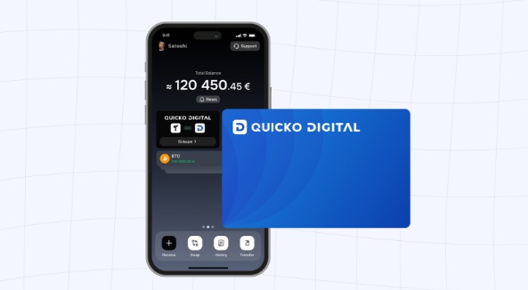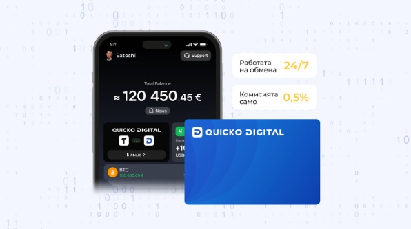 Комбинацията с Quicko Digital позволява създаване на IBAN сметка и безплатни преводи в евро. Картата предлага конверсионна такса от едва 0,5 %, лимит до 50 000 EUR, и пълна интеграция с Apple Pay и Google Pay.