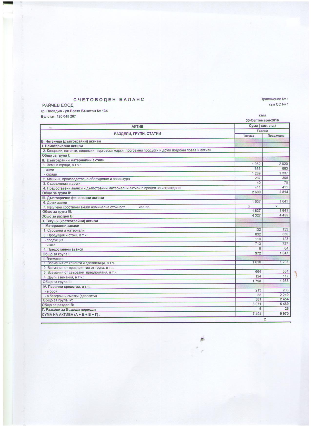ФИНАНСОВИ ОТЧЕТИ КЪМ 31,10,2016