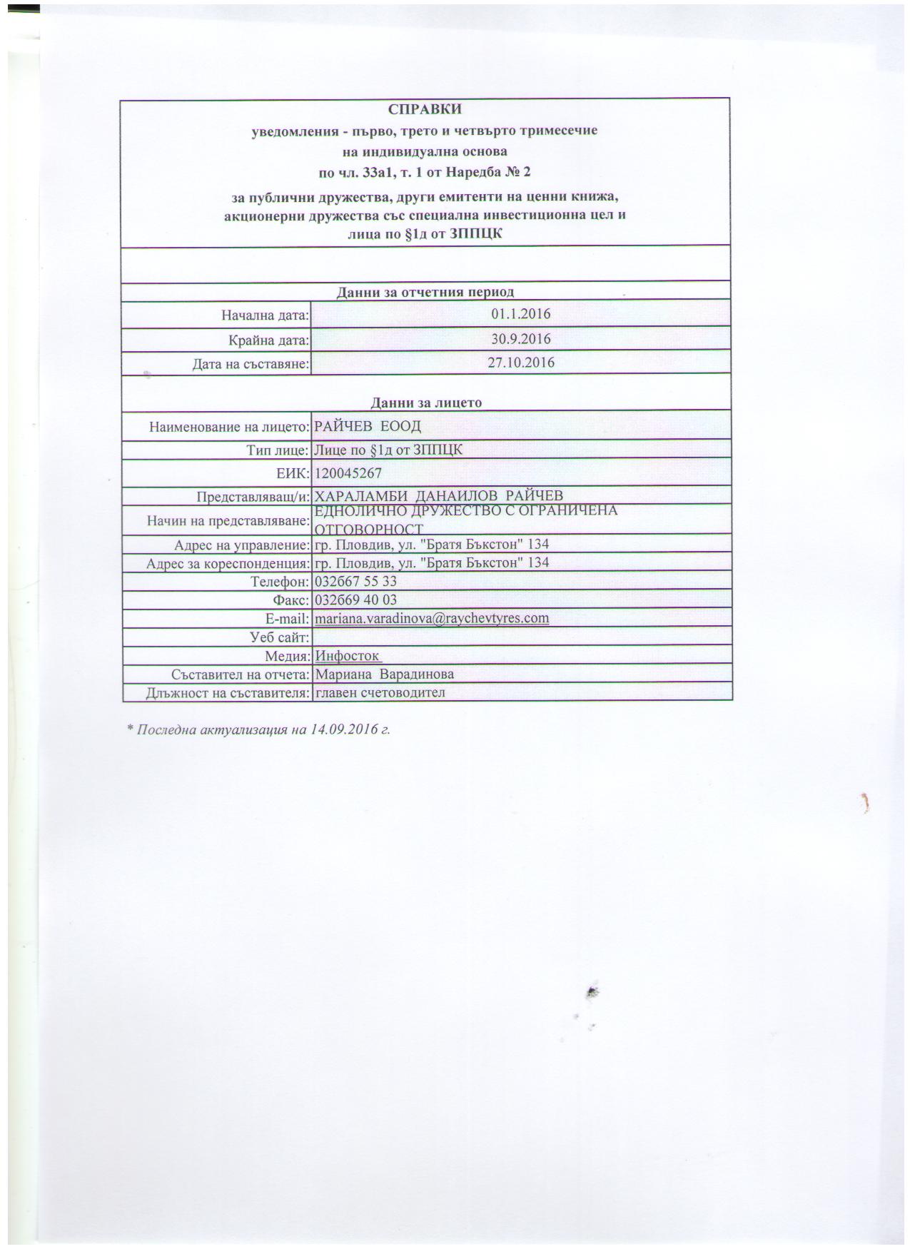 Райчев ЕООД (RAI-NL / RAI-NL)