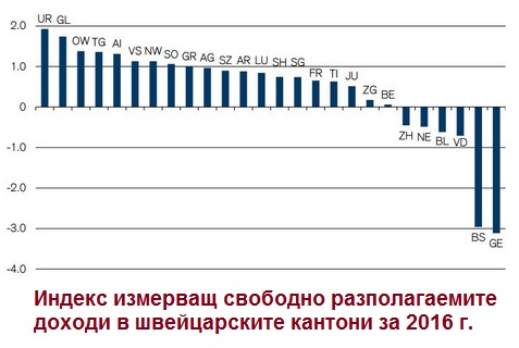 Както и в предходното изследване, направено през 2011 година, контонът Ури постига най-голям разполагаем доход сред домакинствата. Женева и Базел-град са далеч по-малко привлекателни откъм финансова гледна точка, но също така компания им равят и Цюрих, Нойбург, Базел-ланд и Ваад.