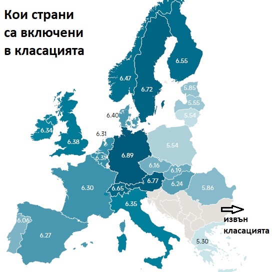 В дъното на класацията са най-слабо проспериращите страни - Гърция и Литва.
