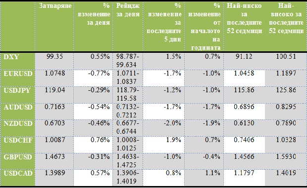 Йената беше единственото изключение и беше силна срещу долара. Долар/йена слиза и днес сутринта беше на нива от 118.60.